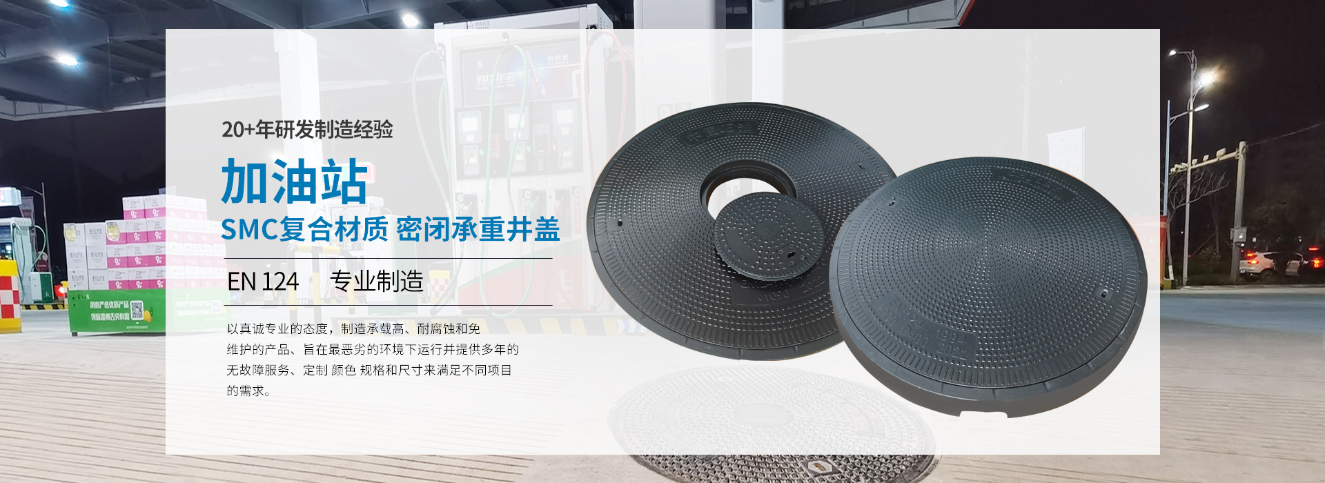 浙江金山道路設(shè)施有限公司,位于浙江省樂清市翁垟街道海嶼金山工業(yè)園萬翁中路882號。本公司成立于2002年,經(jīng)過十幾年的發(fā)展,現(xiàn)已初具規(guī)模。目前公司占地12畝,生產(chǎn)、生活用房2900M2,注冊資金528萬元,固定資產(chǎn)2000多萬元,年生產(chǎn)量2123萬多元。公司員工58人,其中中、高級技術(shù)人員8人。公司擁有全自動的SMC材料生產(chǎn)機組,配有大、中型多臺液壓機及檢測維修設(shè)備。生產(chǎn)成品有BMC復合材料井蓋、水箅系列,SMC復合材料井蓋、水箅系列,球墨鑄鐵復合材料井蓋、水箅系列等一百多種規(guī)格型號產(chǎn)品,基本能滿足國內(nèi)石油化工工程配套、市政道路建設(shè)、電力電信等工程所需用的各類復合材料產(chǎn)品。公司曾是2009年度中石化入圍供應商。